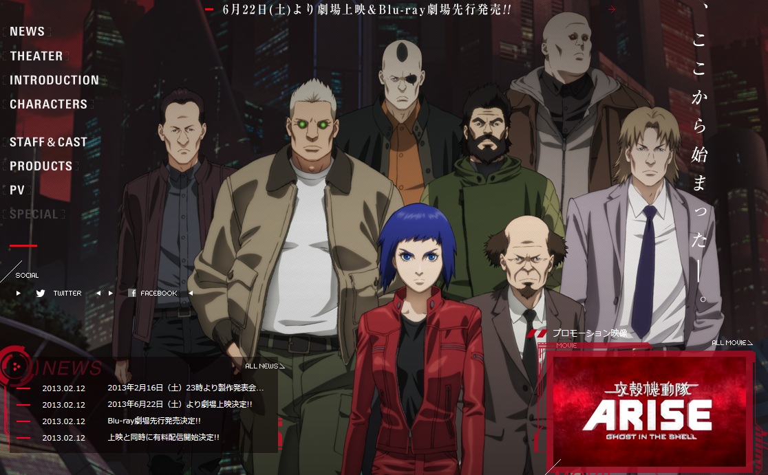 6月22日上映の「攻殻機動隊ARISE」ですが、公式サイトが色々、更新されてます。