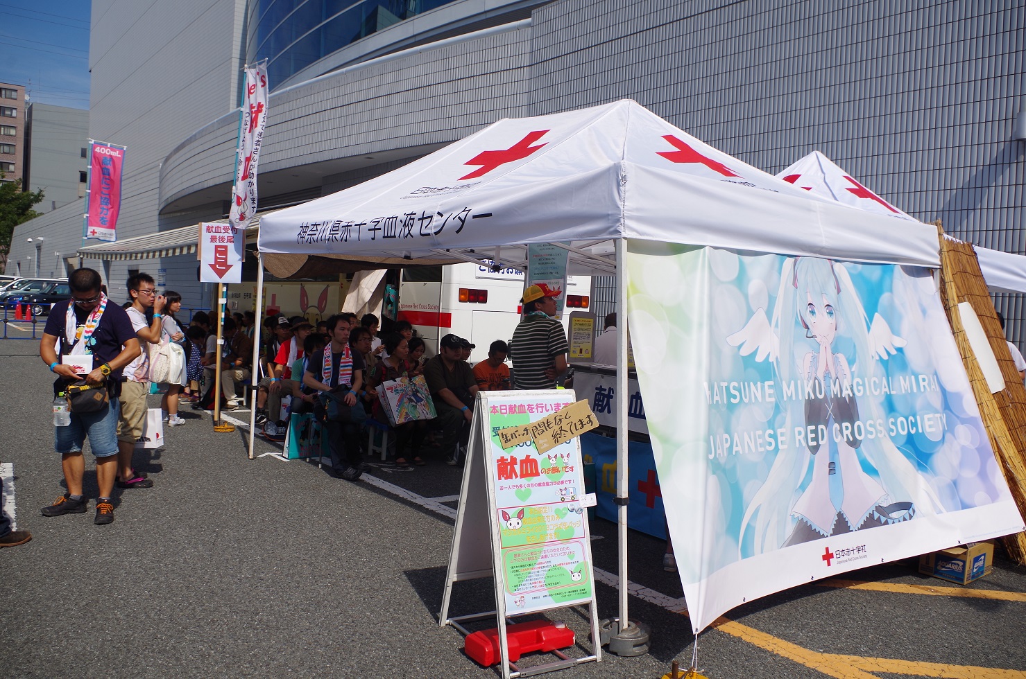 「初音ミク×献血」コラボののぼりです。