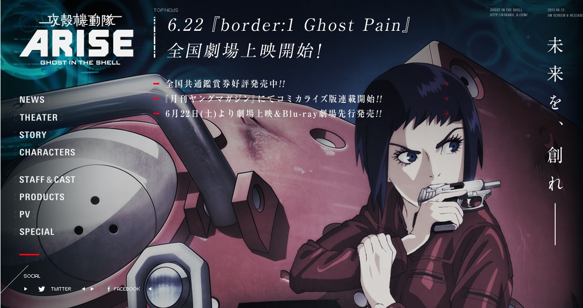 6月22日上映の「攻殻機動隊ARISE」ですが、公式サイトが色々、更新されてます。